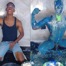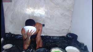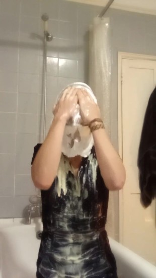 | I dive into a bathtub full of black slime and get dirty! I'm completely covered in shaving foam! And I jerk off passionately in it! | |