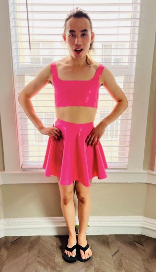 Smiley is wearing a cheerleader uniform, slouch socks and platform converse. She shows off how cute she looks before stepping into the pool. She dips... |