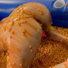 | Another sloppy round of pied versus challenger, getting stripped, pied, spanked, and cumming all while covered in pie. | |