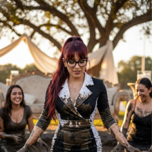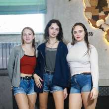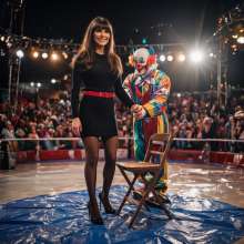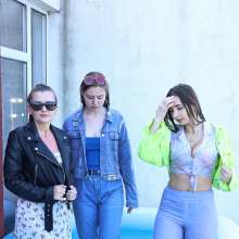 | Mariah is wearing a mint green sequined top, and a black miniskirt, paired with black high-heeled shoes with ankle straps. Layla has on a black suit jacket over a low-cut bla... report | |