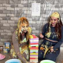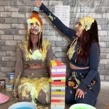 | 343 ultra-high quality photos from the scene "Sydney's Messy Trivia Challenge in a Dress and Heels!" report | |