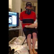| Lucas is a very muscled afro guy who said yes to get messy for the first time. He starts by painting his naked body yellow and then gets dressed. He dips his shoes in blue sli... report | |