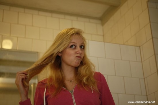| Dresses in my black swimsuit, I sit on a chair to dunk my hair backwards into the swimming pool, before washing my hair for the first time. With every dunk, my lips only part... report | |