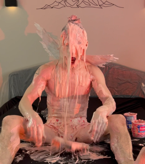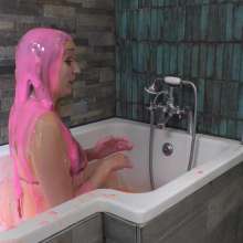 | Robyn is back wearing her white top and black leggings, ready to have more gunge fun! She starts with blue gunge, scooping it up and pouring it over herself, loving the feeli... report | |