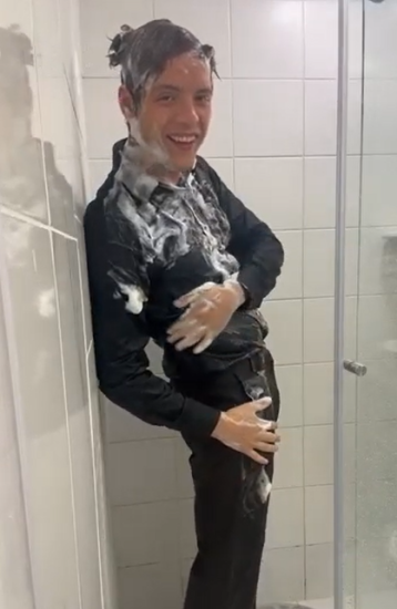 | Ross is in great shape and very handsome in his black shirt and jeans. He starts his shower and immediately his beautiful hair falls down his forehead, soaking wet, and his so... report | |