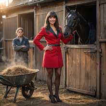 | Fidelity is wearing a beautiful satin finish black maid's dress with lots of pretty white trim, plus cute black leather boots with fluffy interiors, while Rosemary is dressed... report | |