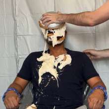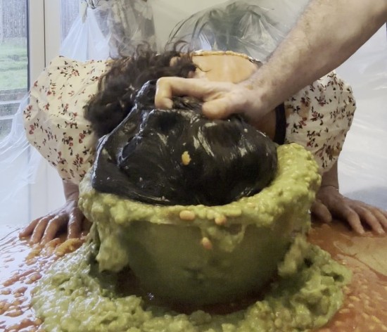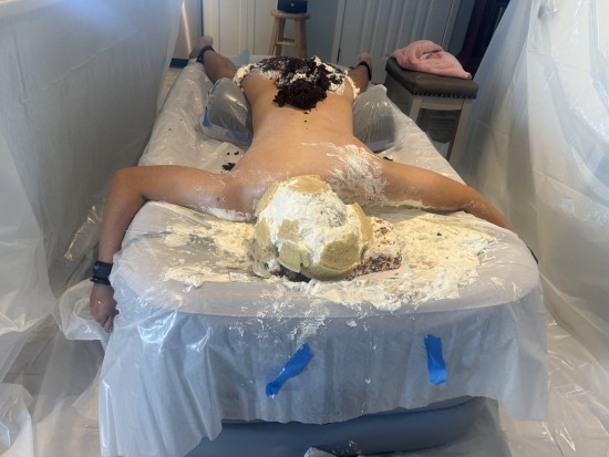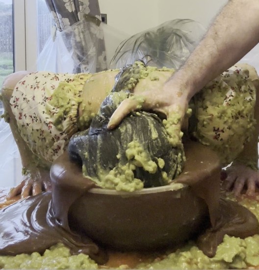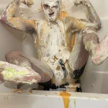 | After mixing up the powdery dough into a thick creamy batter, the human male subject proceeds to step around in it, slipping and falling and rolling over multiple times. Thoro... report | |