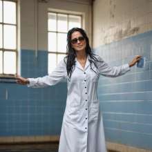 | Danielle is by the outdoor pool dressed up for a night out in a sexy satin dress and white heels. She first shows off her dress while dry and then she decides that the dress w... report | |