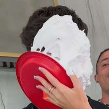 Had a sloppy pie dumped all over his head by nerdypieslut