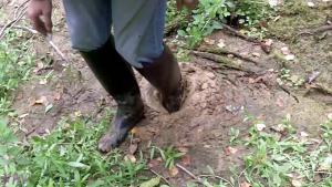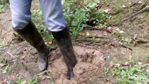 I found a little pit with quicksand.  Some step here and there and the little glade was stomped into a deep hole with soft mud and no bottom.  When my Jeffrey Campbell Marsha boots are deep enough, I try to pull out my leg-- that was hard!