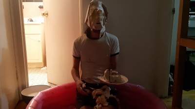This is the last of my old videos, a bit hazy. It was a lot longer but not too good so that's why I added the gif. I'm in my leather shorts and red t-shirt and got a bucket of batter and oatmeal and dunked my head in it and poured it all over myself and hit myself with a few pies.