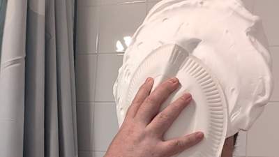 I rub a bit of foam into my cock then pour cone custard onto it making it feel all slippy and slimy. I then tease hitting my cock with a foam pie however I pause and pour the rest of the custard on the pie then smash it into my cock that was eager for more mess. After this for the first time I use a tin of peaches in a cold runny syrup which felt so amazing. I really want to cum at this point so I tease pouring more custard on my cock but pour it over my head instead as I continue wanking all the while trying not to shoot my cum. I pie myself in the face I then stand up showing my foamy arse then pour custard down my crack. Now out of supplies I start wanking off as I head to climax. At the last minute I stand up grab my remote and change the setting on my butt plug and wank off to an amazing climax.