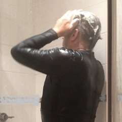 The messing continues, including emptying their wellies into each others swimsuits, and eventually kissing while empting custard over each other's heads and faces. Messy shampoos are given and received, and by the end of the scene they are both completely drenched in mess from head to toe.