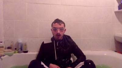 I'm all slimy from part 1 but now I remove the hoody to show the yellow top I'm wearing and that underneath the blue makes it look green but all that slime made it difficult to get a grip and it made me very horny so I started to play with my cock out and presented to the camera until I satisfyingly climaxed and it felt brilliant.