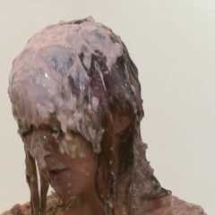 Finally, Amber lays on her back and Lorna lays on top of her. They embrace and kiss while a torrent of custard floods onto their faces. Completely covered, they are still kissing as we fade to black.