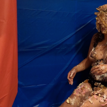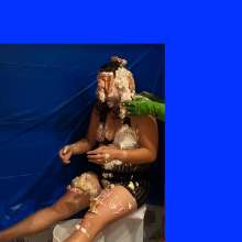 She took a lot of old food we didnt use canned foods and desserts we froze for this sesh. I did get some stuff on sale at grocery store. Cake and donuts as nipple covers, sweet and savory sliming, feet mushing of slop over bucket AND even head dunks into