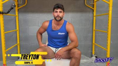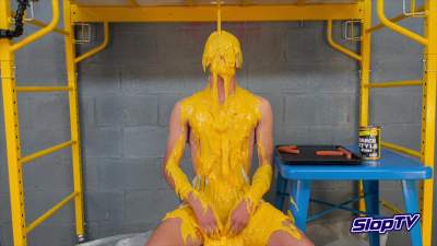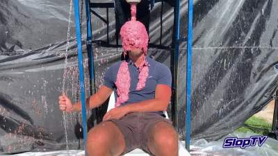 Angel is a hunky construction worker from the Northwest. His visit to Sloptv begins like all the others. Wearing the Sloptv uniform with a load of blue slop dropped on his head.