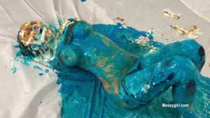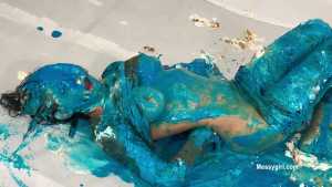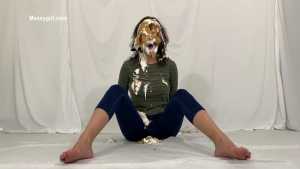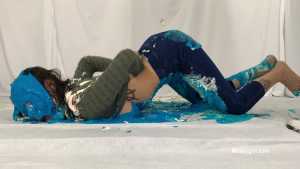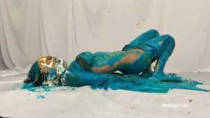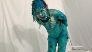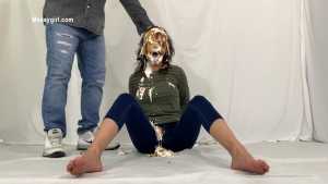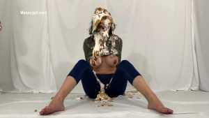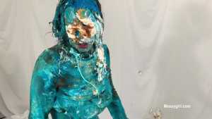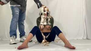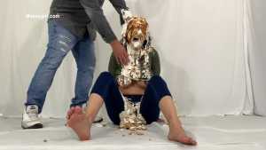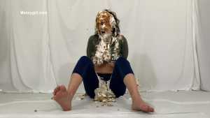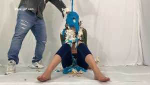 My first WAM bondage shoot and it was extreme. I was handcuffed and had an open ring gag stuffed in my mouth. Little did I know having my mouth open like that would cause me to literally deep throat pies. After each pie hit, the cream would go deep down my throat, so much so that it was coming out my nose, yep you heard me, out my nose! I also had my first pie to my ass in this one, which felt good. I loved look of the blue slime I was covered in as well.