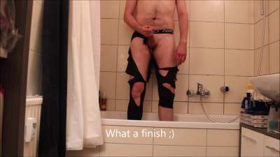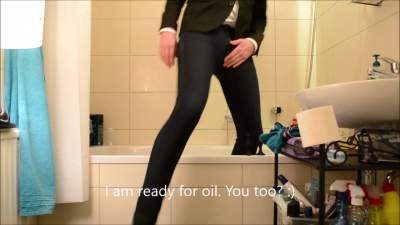 My girlfriend orderes some new clothes. I expected that the parcel will be for her. Think again! She went on a business trip and gave me some very expensive and messy task to you. We might can say "homework." It hat to get dressed in all new clothes: a light-blue "Mango" blazer, grey skin-tight Freddy pants and an awesome "Guess" satin blouse. It was a phantastic feeling. Furthermore I got a nice "Wittchen" handbag around where I had to give one of her beautiful leather leggings in. Afterwards I went to the shower and destroyed, cut and ripped all the clothes with chocolate and strawberry sauce. It was great--I enjoyed it very much--but not the bill I have to pay. Simply wasted 400 Euro