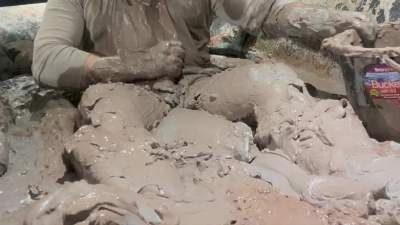 MudTradie is back out at his favourite spot in the estuary, this time in his denim dungarees and Dunlop Thermo boots. He starts by digging out a mud hole in the thick black sludge left by the low tide, and gradually adds in more water, bit by bit, until it's deep enough to really start getting stuck in. He steps into the newly built pit and starts stomping around and sliding his huge boots around until the water becomes thicker and thicker with black muddy slime, quickly entering over the tops of his Thermos and splashing down over his socks. I'm sure you can imagine what happens next, but thankfully, you don't have to.