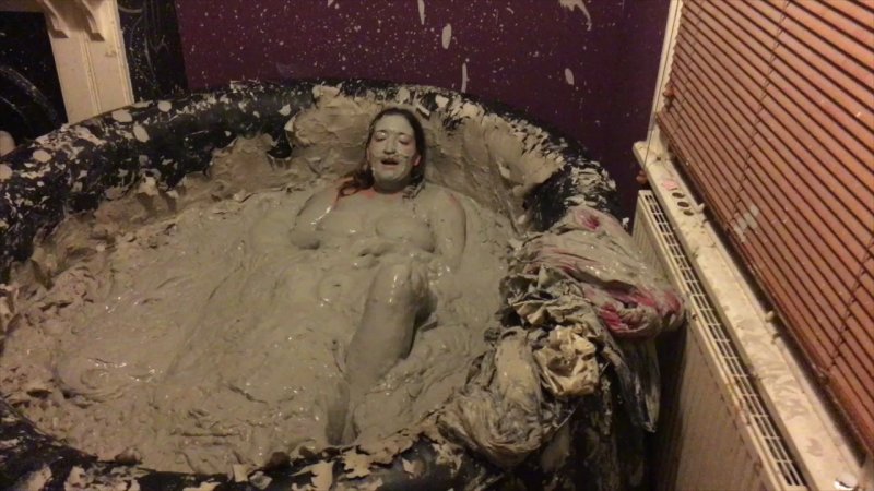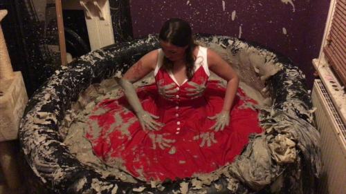 Maria is deep in the mud pool, her fifties styles dress has been totally trashed; now is the time for her to wallow naked. She strips off the dress and fills her tights with the thick clay. The tights soon come off and stripped naked she sensually submerges. By the end she is a human statue covered from head to toe in the slick sludge.
