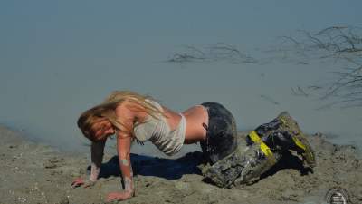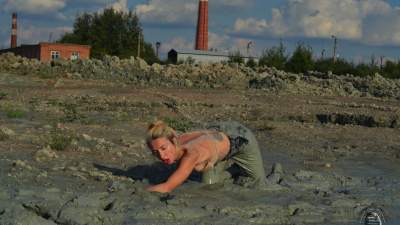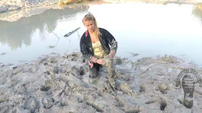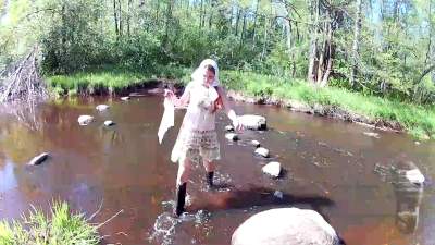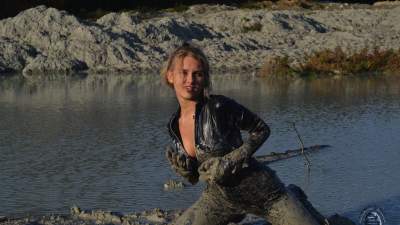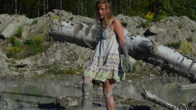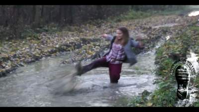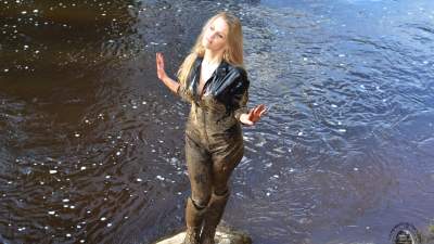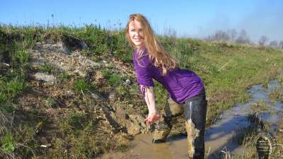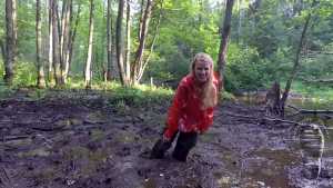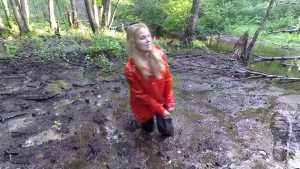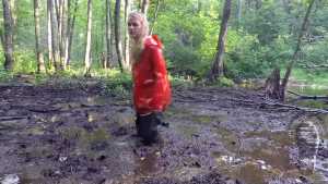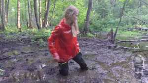 Darina Having Fun in Her Wet and Muddy Rainsuit