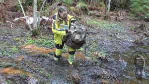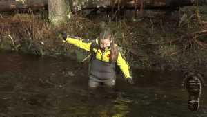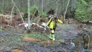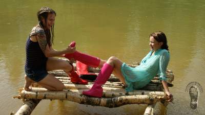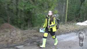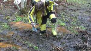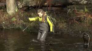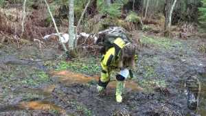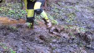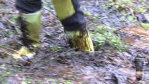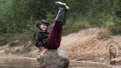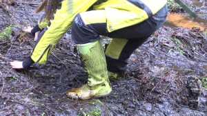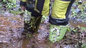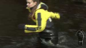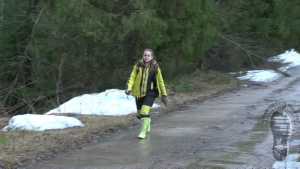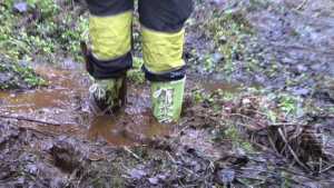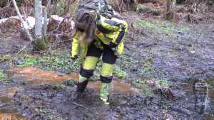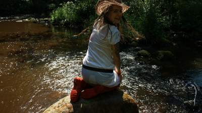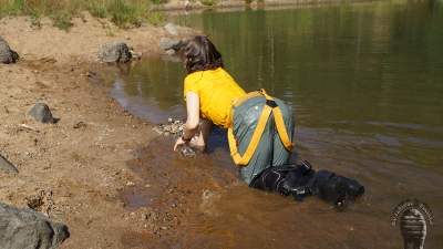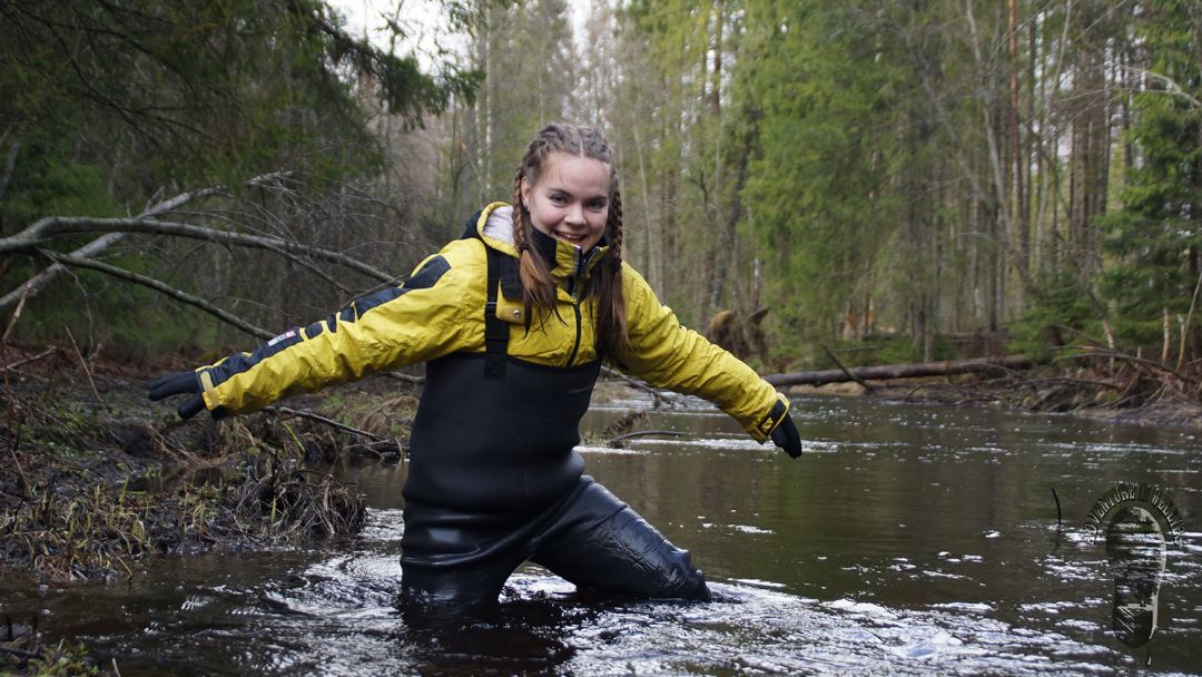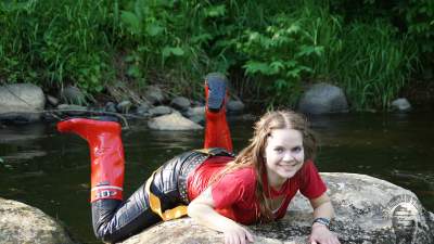 "Darina searching for treasures and getting wet and dirty."