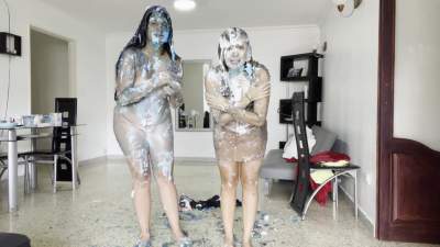 Kaydens Vs Tracey... Strip Marshmallow Fluff Wrestling