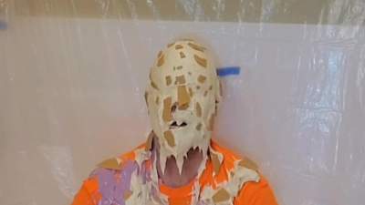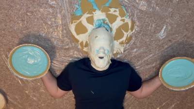 I've been wanting to turn my head into a Reese's peanut butter cup for a while, and now it's complete! I start by taking 5 massive pies to the face for a fluffy base, then methodically covering my face and head in chocolate cake batter, the perfect runny, gooey peanut butter (12 pounds worth), and multiple gallons of chocolate syrup! I bookend that with another 5 massive pies to my face, then of course have to take a few extra heaps of mess to fully encase myself in my gooey dessert. How did I do? Let me know what you think and if you like what you see--always looking for folks for to help with the next shoot!