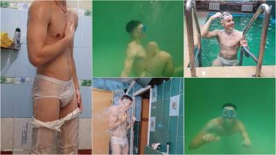 "Spandex strongly pulled Ruslan after getting wet;) hot wet look"