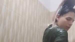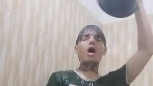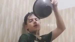 Thomas gets wet again and this time uses buckets of water. He constantly throws buckets of water over his head and himself, and his green shirt and pants quickly get wet. He never gets tired of throwing water on himself and in the end he will surprisingly get wet and show us his jewel... sexy!