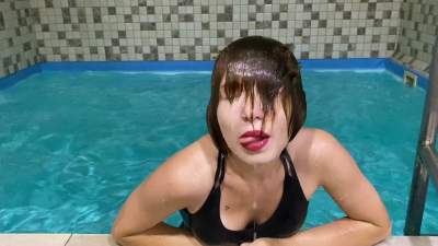 Wetlook in an Inflatable Pool Sheer Top and No Bra!