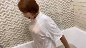 Wet in White Sheer Outfit and Washing Hair!