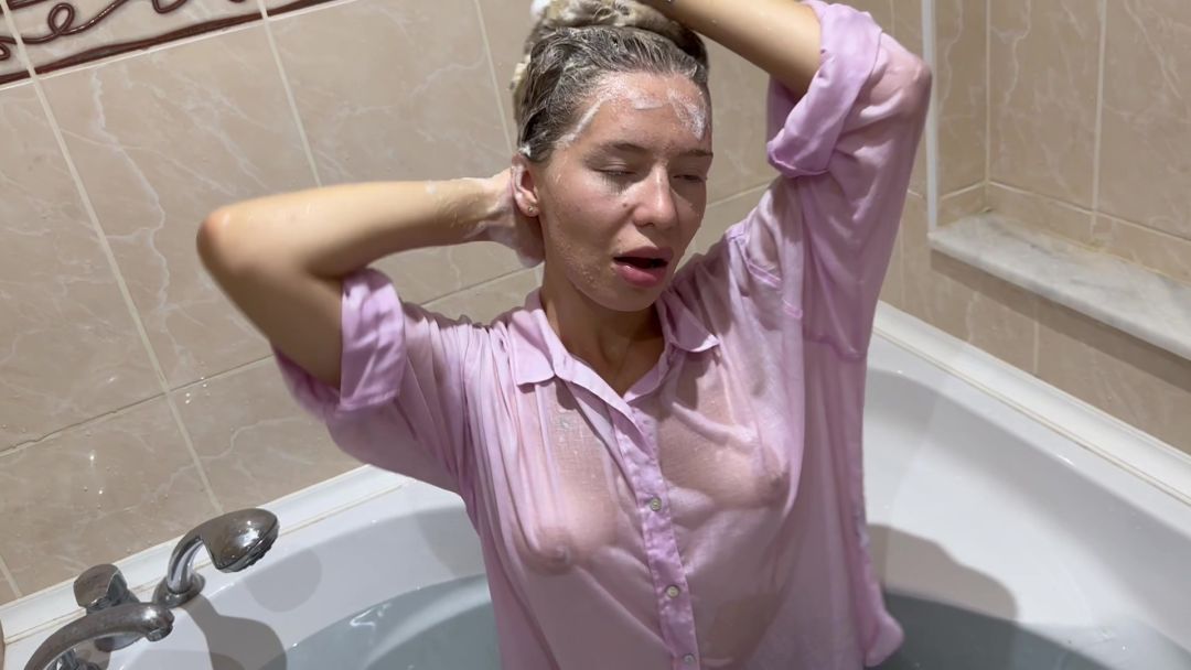 Wetlook in a Sexy Transparent White Suit! No Lingerie!