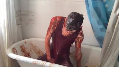 "Excellent messy scene! This scene is definitely worth the money! Love the part where he gets messy with pies and chocolate syrup. After he's drenched in the gunge he starts wanking and sliding in the singlet. Even though the cumshot is not visible its a great capture of that moment! ![]() | |