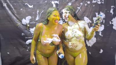 Natti is having a good feeling, she wants to play against candy. They prepare a real good performance wearing Natti Black Top and Candy White Top. The girls' idea is to play 3 fun games with a lot of mess in each mistake: Pie. This games are: Rock paper and scissors and Questions and answers. Our sensual Natti will not be having good luck today, I can't wait to see her full of cream and totally messy.