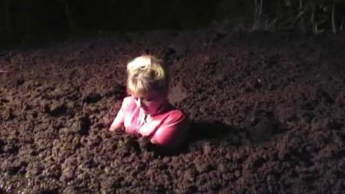 Brunette Embre happens upon Blond PamelaRose naked in a deep clay pit. She takes cover and watches her getting aroused until she is discovered. PamelaRose then invites her to join her and she does. Both ladies enjoy the clay and each other as Embre takes off her top reveling her huge breasts. Both ladies touch and enjoy feeling each other up and finish off the afternoon by submerging.