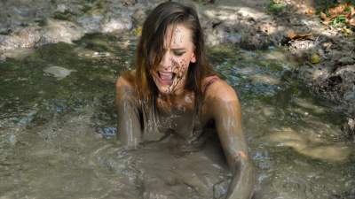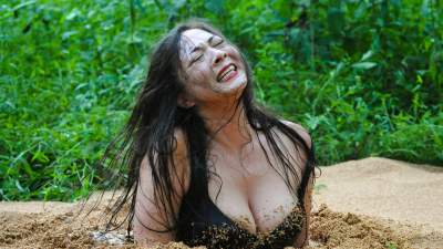 An experienced hiker, typical to knowing everything about anything when it comes to the great outdoors, finds herself in a quicksand situation. Going by the book of levying off backpack weight, reaching for a branch, back paddling, and using her shirt to catch a rock or something, it is not enough to save her. First effort from new producer Quebec Sierra Productions. Note--This is a fantasy scene intended to entertain fans of women in peril. Nobody was harmed during the filming of this scene.