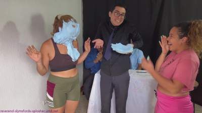 Once again the Rev has delivered. I ordered 2 customs the first featuring Axa and Satine and both girls gelled superbly and the result was excellent. They took the mess in style and seemed to have great pleasure in dishing it out to each other! The second clip was a wetlook special featuring Satine auditioning for the role of Weather girl whose forecast included loads of rain which resulted in the poor girl being soaked with a large number of buckerts of water! Once again despite her ordeal she took the punishment superbly. Two great girls, an easy efficient and speedy service from the Rev. Whats not to like!