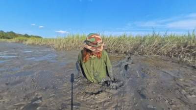 Like even when the boots weren't stuck in the mud they weighed like 40lbs on my feet. Like cinderblocks for shoes. I did a jump into the mud and got stuck waist deep in these bad boys. Then I did a lot of sensual rolling around and glamour. Just really soaking in the hot weather. I'm so happy it's hot outside now. There is a tiny amount of touching in this video. It's mostly a stuck video. I wanted to push myself to see how much I could wear myself out lol.
