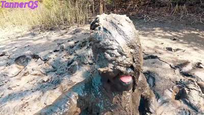 I find an opportunity then I sink under slowly. Blow a bubble then extract. Mud covering my head sticking to my skin staining my face. I blow more bubbles quickly get out. I get out to thigh deep and flash the camera with my massive butt. I dive in the mud afterwards. and that's just the first 24 minutes.