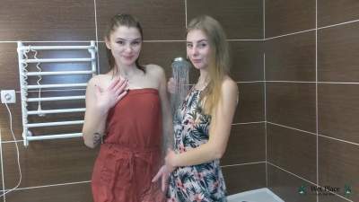 Lovely Nastya Shower In White Tight Leggings And Thong