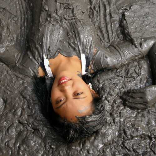 | After Cinnamon and Masala gave each other mud masks, they each rinse them selves separately. This is Cinnamon washing and rinsing her face and clothes... |