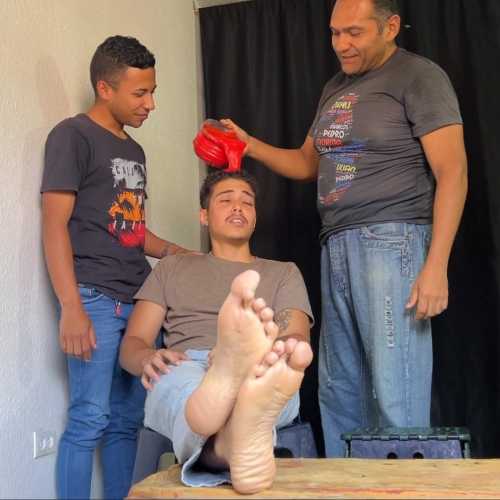 Loukas is a cute blond Guy. In this session, he wears his own clothes and show his feet on cam. He is gunge with different buckets of Slime : Green, purple, gey, eyc... the...  report