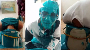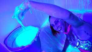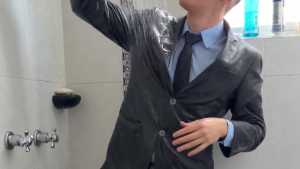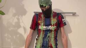 Sebastian starts fully naked and pours a cup of blue slime on his face. Then he spreads it until he is fully covered head to toe. Then, he dresses up and pour gallons of mult...  report