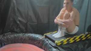 JellyKid starts off on a balcony as the sun sets wearing just a pair of tight blue jammers. He pours a trifle in both the front and back of it, before putting on a very tight...  report