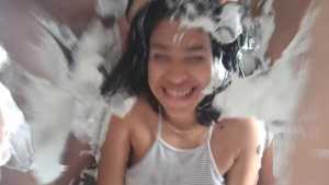 Diana with Shaving Foam and Gets Wet! In Sexy Lingerie!  New