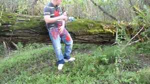 LiamB is fully-dressed today, even with a jacket over his black T-shirt, and along with his jeans, he's also wearing a belt, socks, and shoes. He starts taking a fantastic sho...  report