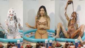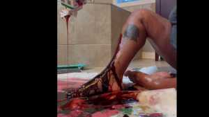 Nina is out of lube so her customer has generously provides some chocolate for her to use on his foot massage. Watch her get destroyed with chocolate syrup and take several p...  report