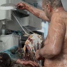 Smeared pies all over his business suit by megapies